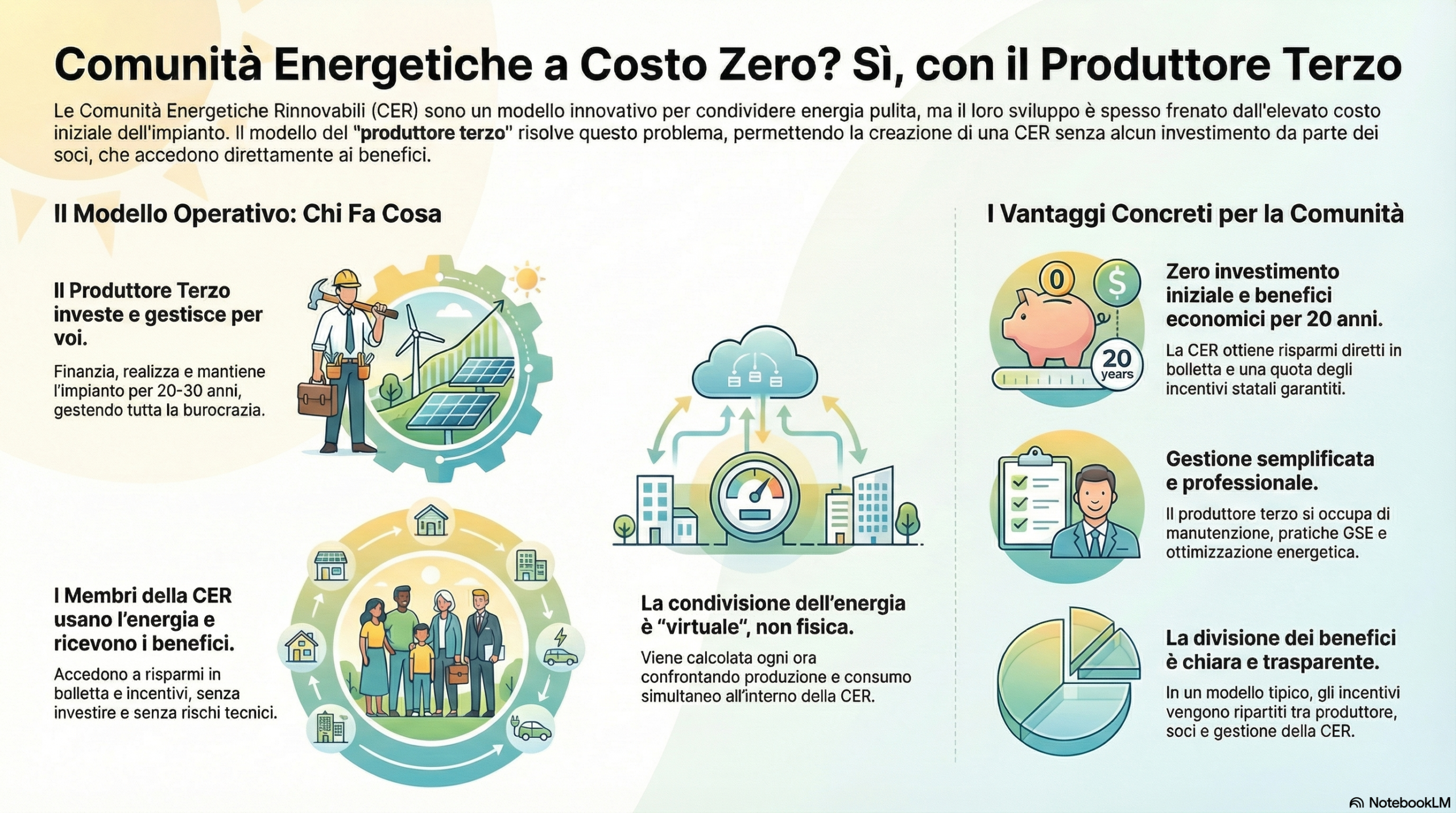 Le comunità energetiche rinnovabili (CER) rappresentano oggi il modello più avanzato per la condivisione di energia pulita in Italia. Nonostante il grande interesse, l'ostacolo principale è spesso rappresentato dall'investimento iniziale necessario per la costruzione degli impianti fotovoltaici. Nel 2026, questo limite viene superato grazie al